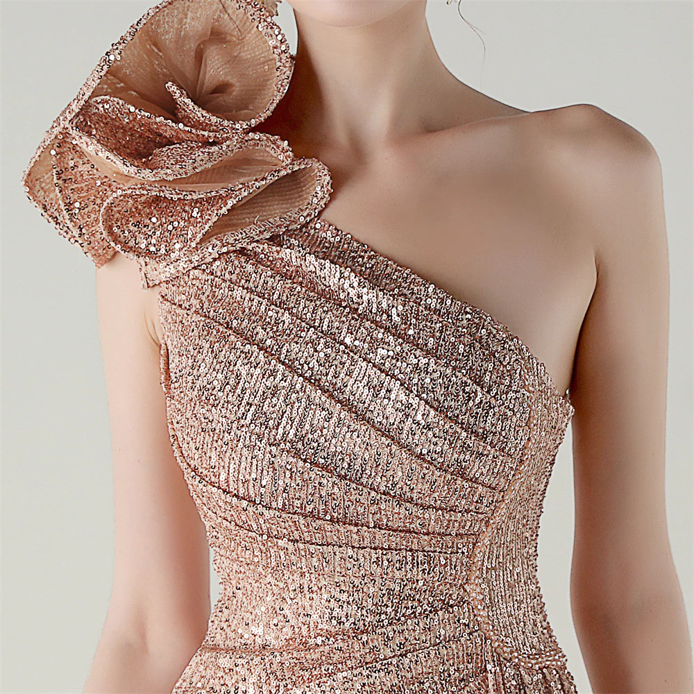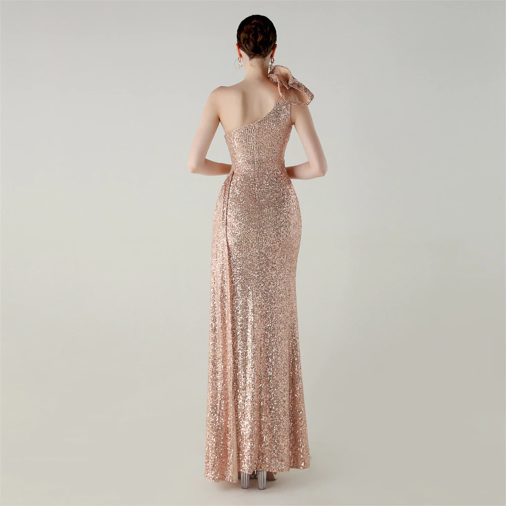 ✨ Elegant Sequin Evening Gown – One Shoulder Mermaid Dress ✨