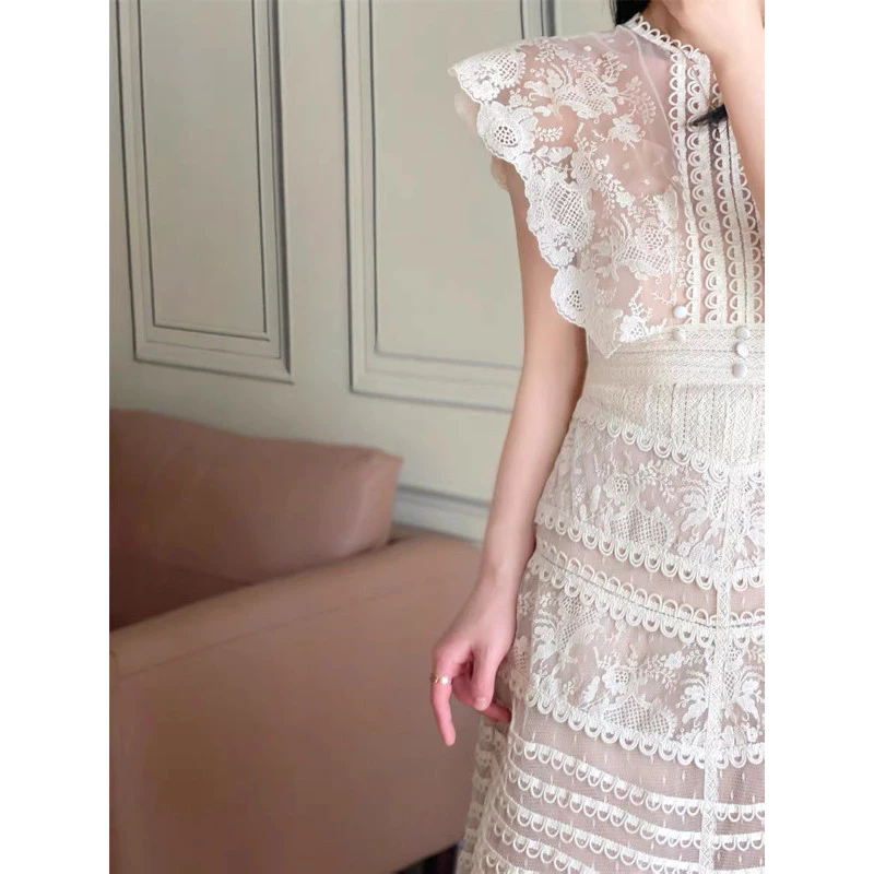💎 Sunny Dress is a stylish and comfortable knee-length lace dress, perfect for casual parties, gatherings, and special occasions. The premium lace material ensures breathability and elegance, while the sleeveless design and slim waist cut enhance your silhouette beautifully.